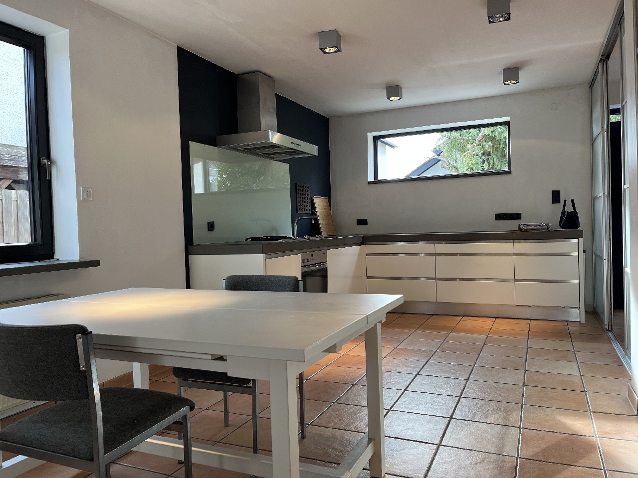 Durch das tagesbelichtete Entree gelangt man durch eine moderne Glasschiebewand in die Küche, welche zum