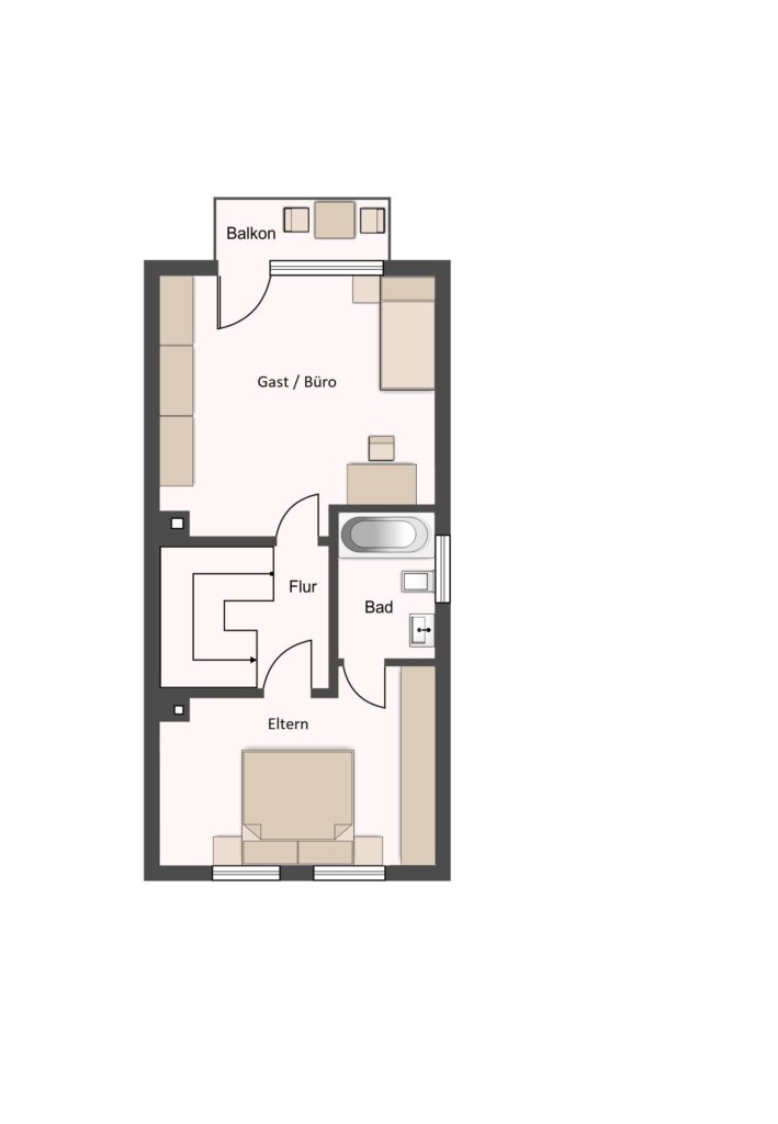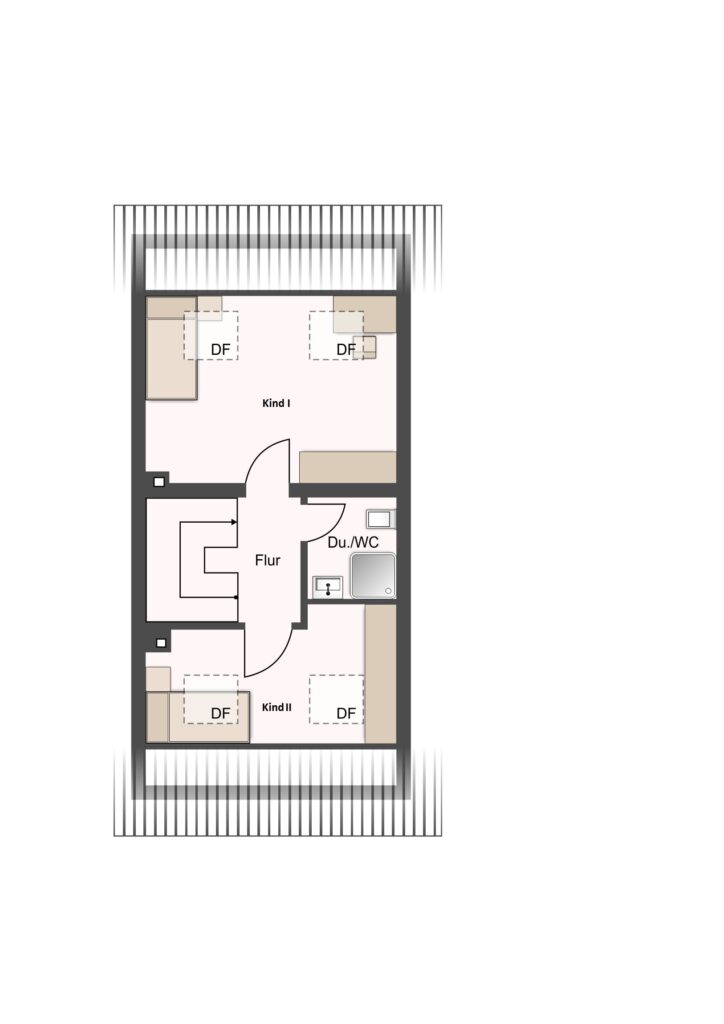 Im Dachgeschoss befinden sich zwei weitere Zimmer sowie ein innenliegendes Duschbad.