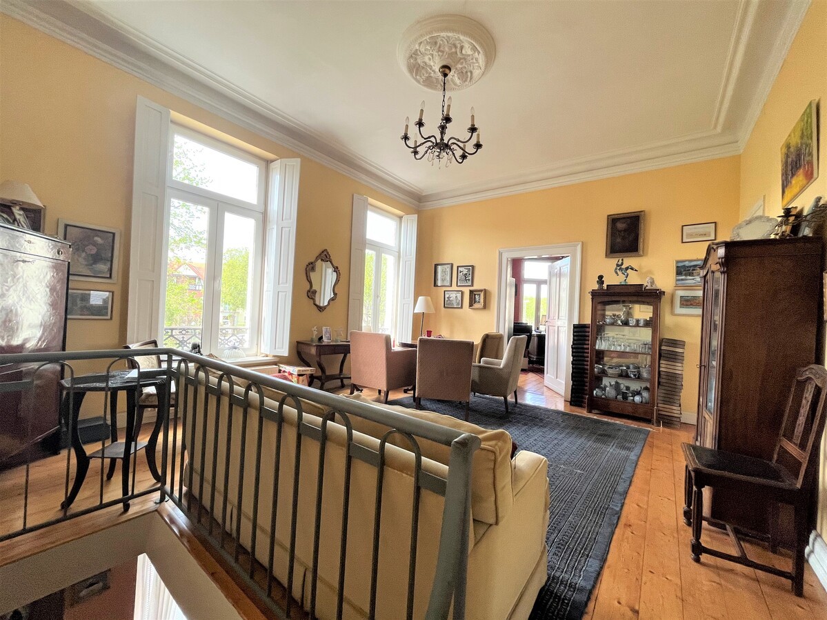 Von der Diele aus sind alle Räume der Hochparterre-Ebene zu erreichen. Rechterhand liegt die Wohnküche, daran angeschlossen das Esszimmer (Eckzimmer), linkerhand liegen das gartenseitige Schlafzimmer mit Zugang zum Wintergarten, daran angeschlossen das Wohnzimmer. Von hier aus führt eine Innentreppe in die Bel Etage des Hauses. Dort liegen drei weitere große Räume, einer mit Zugang zur gartenseitigen Loggia und ein großes Badezimmer mit Wanne und Dusche. Die hochrechteckigen und langgezogenen Fenster sorgen für viel Licht. Die aufwändig geschmiedeten Brüstungsziergitter mit Holzhandläufen in den Fensterlaibungen verleihen den Räumen einen Pariser Flair. Historische Dielenböden, Kassettentüren mit Kastenschlössern und prächtige Stuckrosetten sowie umlaufende Gesimse, lassen das Herz eines jeden Altbau-Liebhabers höher schlagen.
