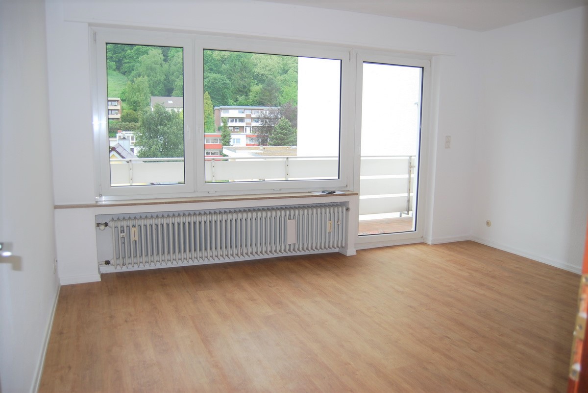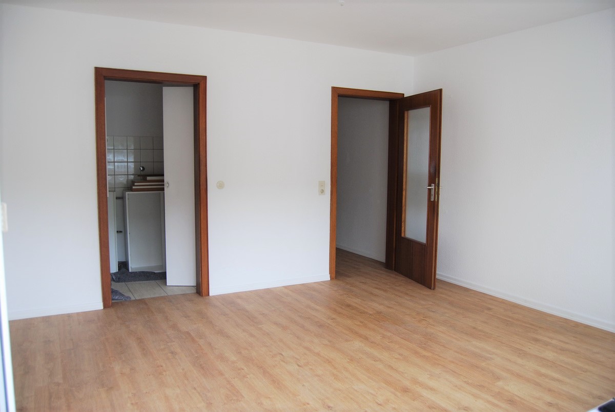 Die ca. 48 m² große Wohnung teilt sich auf in ein Wohnzimmer mit Kochnische, Vorratsraum und Zugang zum ca. 6 m² großen Balkon in Süd-West-Ausrichtung, ein Schlafzimmer und ein innenliegendes Wannenbad.