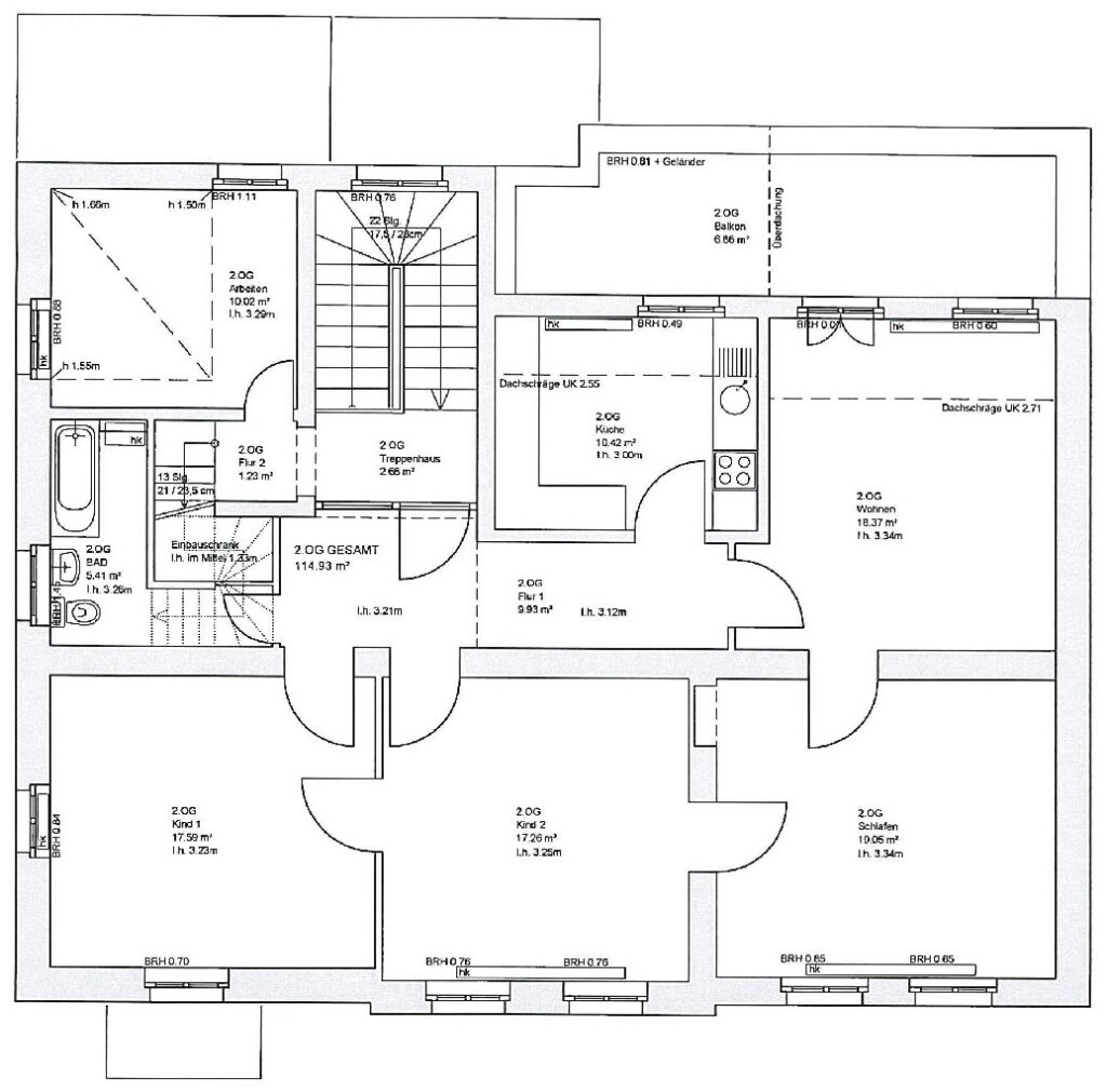 2.OG (ca. 118 m²): 4 Zimmer, Küche, Diele, Bad, Balkon + 1 separates Arbeitszimmer (von Treppenhaus begehbar)
