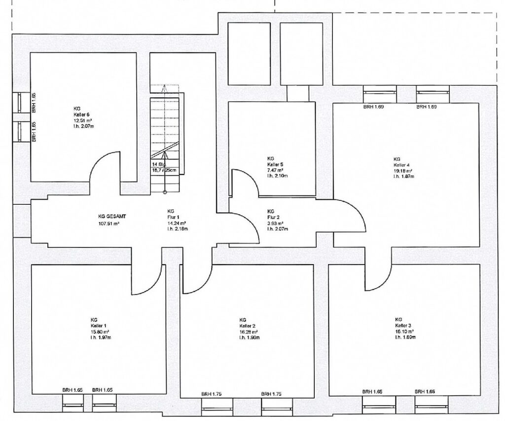 Diese Aufteilung hat bis heute Bestand, sodass nunmehr drei Etagenwohnungen zur Verfügung stehen. Über der Wohnung im 2. Obergeschoss gibt es einen Speicherbereich mit eigenem Treppenzugang.