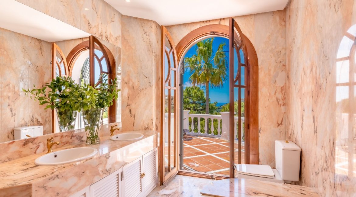 Charmante Villa mit Meerblick in El Madroñal, einer geschlossenen Anlage mit 24-Stunden-Sicherheitsdienst, umgeben von Natur. Eine Natursteintreppe führt zum schönen Eingang dieser Liegenschaft. Sie teilt sich auf in eine Eingangshalle mit eleganter Treppe bis zur oberen Ebene, ein großes Wohn- / Esszimmer mit Kamin und Zugang zur überdachten Veranda und dem Garten mit Meerblick, eine geräumige Küche mit Zugang zu einer überdachten Terrasse, ein Schlafzimmer mit eigenem Badezimmer, eine Gästetoilette und eine Wäschekammer. Auf der oberen Ebene findet sich ein Schlafzimmer mit Ankleide und Wannenbad ensuite, ein mit Treppe zur Dachterrasse Solarium und ein weiteres Schlafzimmer mit eigenem Bad. Alle drei Schlafzimmer haben Zugang zu einer großen Terrasse mit Panoramablick auf Gibraltar und Nordafrika. Es gibt ein separates Gästeapartment auf der Eingangsebene mit Schlafzimmer, eigenem Bad und gemütlicher Terrasse. Eine Doppelgarage bietet Platz für zwei Fahrzeuge. Der gewachsene Garten mit Meer- und Bergblick bietet einen beheizten Salzwasser-Pool und einen überdachten Grillplatz. Hier einige Ausstattungsdetails: Klimaanlage, automatisches Bewässerungssystem, Alarmanlage, uvm. Ein fantastisches Haus mit großem Garten in einer ruhigen Gegend, nur 15 Autominuten von Puerto Banús entfernt!