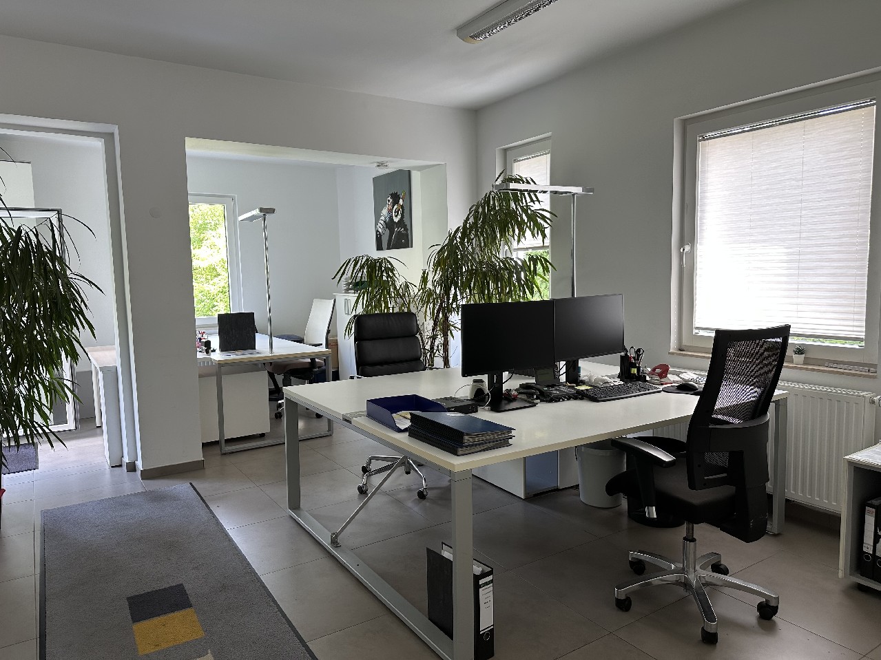 Das 1939 als Einfamilienhaus errichtete Gebäude zeigt sich in einem sehr gepflegten Zustand, eine Generalsanierung erfolgte im Jahre 2012 (Dach, Heizung, alle Leitungen). Zwischendurch erfolgte eine Umnutzung des Gebäudes. So findet sich im Erdgeschoss ein bezugsfreies Büro, welches bei Bedarf auch wieder zu Wohnzwecken umgebaut werden könnte. Die Wohnung im 1. Obergeschoss ist ebenfalls bezugsfrei und wurde auch als Büro genutzt, hier müsste noch ein Bad eingebaut werden. Das Appartement im Dachgeschoss mit Bad und Küche ist z.Z. noch vermietet.