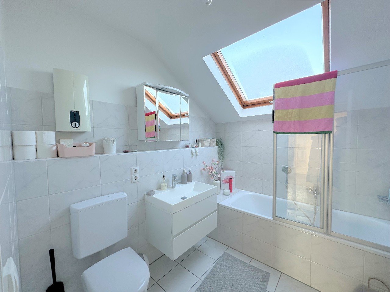 Das ebenfalls 2 1/2-geschossige 9-Parteienhaus teilt sich auf zwei Hauseingänge in zwei 5-Zimmer-, fünf 3-Zimmer- und zwei 2-Zimmerwohnungen. Auch hier hat jede Wohnung mindestens einen Balkon bzw. im Erdgeschoss eine Terrasse. Im rechten Hausteil (Einspänner) liegen drei Wohneinheiten übereinander. Die Wohnung im 1. Obergeschoss verfügt über ein zeitgemäßes Bad und dreifachverglaste Fenster. Die Wohnungen im Erd-/ und Dachgeschoss bedürfen bei einem Mieterwechsel einer Modernisierung. Im linken Hausteil (Zweispänner) liegen sechs Wohnungen, zwei auf jeder Etage. Die vier Wohnungen im Erd-/ und Obergeschoss sind allesamt mit dreifachverglasten Fenstern ausgestattet. Die Bäder, unterschiedlichen Baujahrs, sind bereits modernisiert. Die beiden Wohnungen im Dachgeschoss sind mit isolierverglasten Fenster ausgestattet. Das Badezimmer der linken Wohnung wurde in 2014 modernisiert. Die Böden der Einheiten sind auch hier überwiegend mit Parkett und Vinyl belegt, teils mit PVC.
